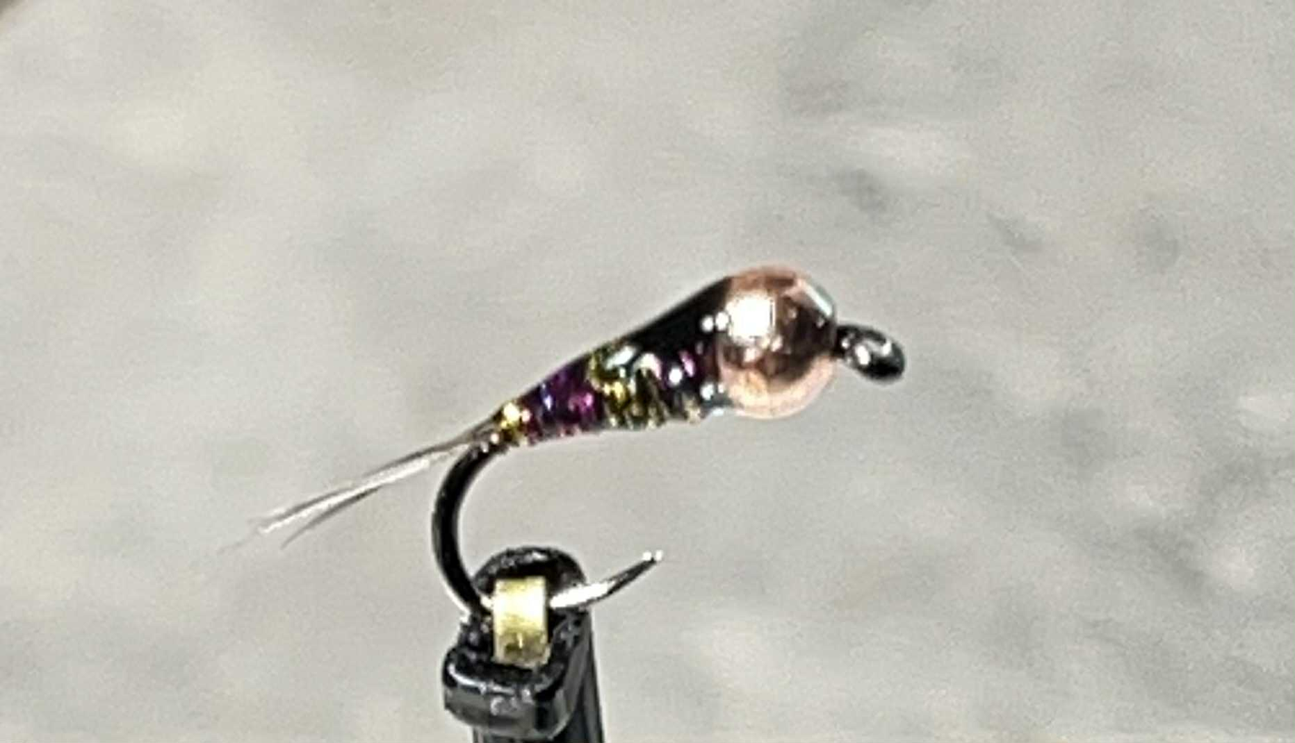 Nymphe de couleur arc-en-ciel qui a fait ses preuves en compétition. Elle est surtout efficace avec les truites. Elle existe aussi avec un tag rouge.