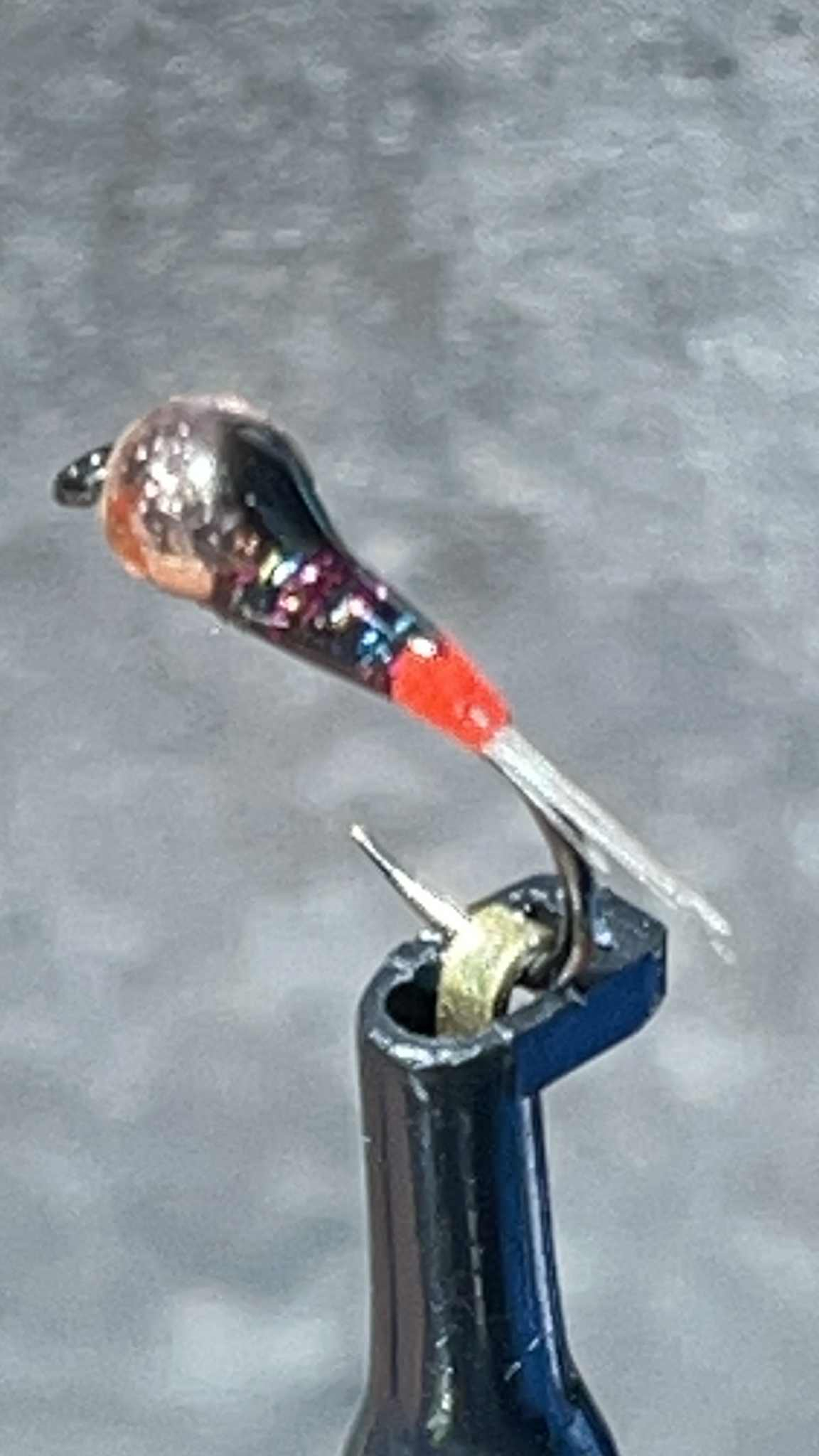 Nymphe de couleur arc-en-ciel qui a fait ses preuves en compétition. Elle est surtout efficace avec les truites sur tout type de rivieres . Elle existe aussi sans le tag.