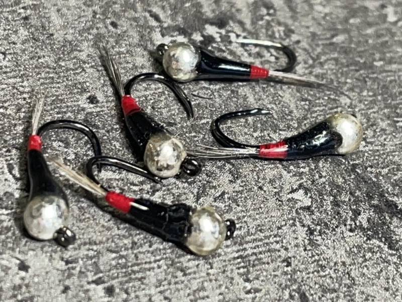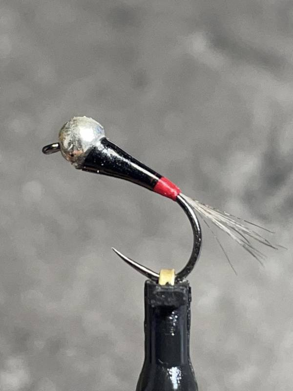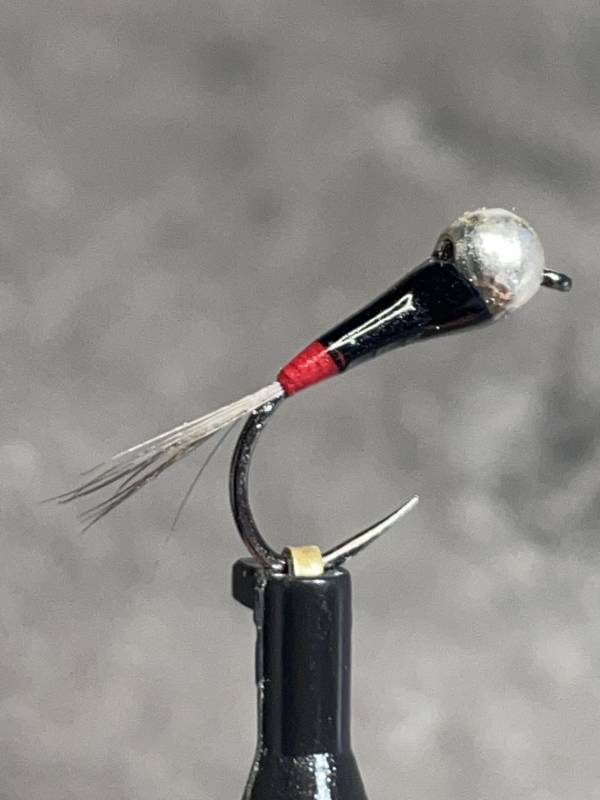 Nymphe Perdigone tag rouge et noire, montée sur les hameçons forts de fer (spn) qui a fait ses preuves autant pour la truite que pour l'ombre tout au long de la saison. À avoir dans ses boîtes !